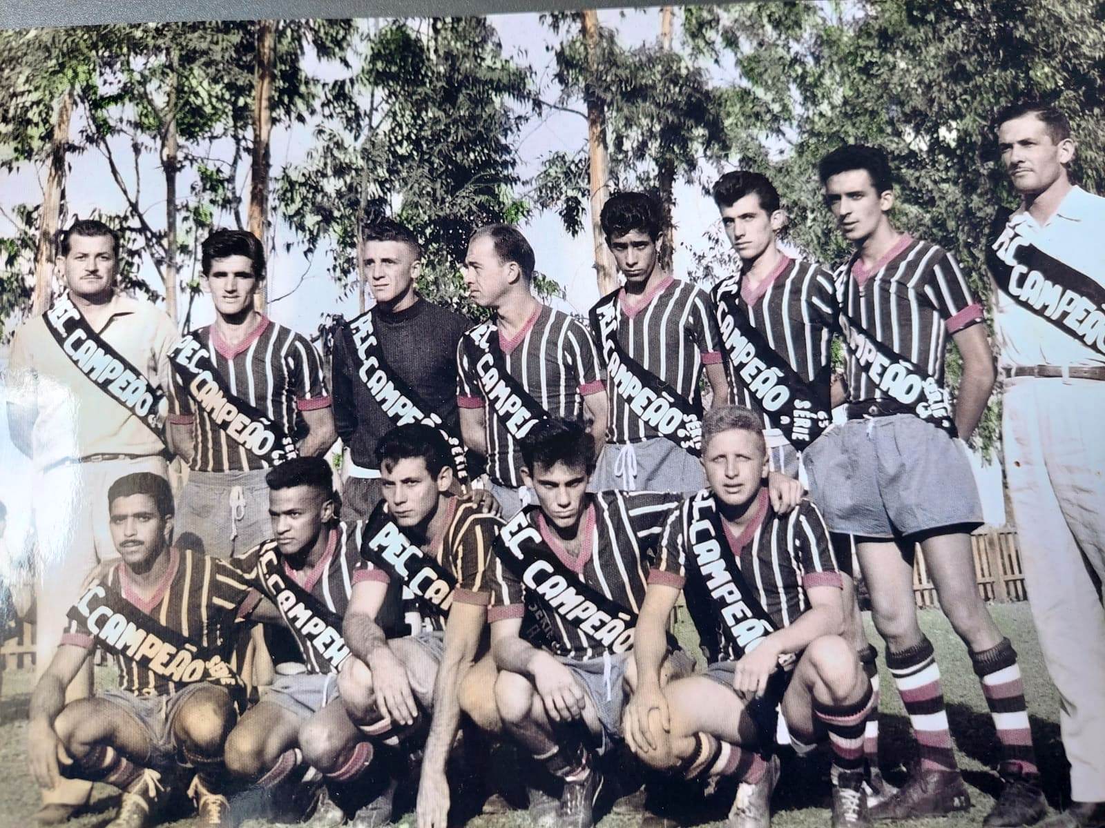 O time do Paulista de Catiguá foi campeão com jogadores de Catanduva. Estão de pé e da esquerda para a direita: José Brunell (técnico), Arlindo Vertoni, Raylton, a identificar, Sapiva, Felício. Nelson Fubá e a identificar. Agachados: Anacleto, Cleudir, Laissi Sabatini, Micho e Wilson Catanzaro. Foto do acervo de Antônio Cleudir de Souza.